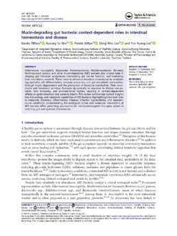 Akkermansia muciniphila, Bacteroides thetaiotaomicron, Mediterraneibacter (formerly Ruminococcus) gnavus, and other mucin-degrading (MD) bacteria play pivotal roles in shaping gut microbial ecosystems, maintaining gut barrier function, and mediating host–microbiota crosstalk. These bacteria influence intestinal homeostasis by modulating epithelial cell differentiation, immune responses, and gut microbiota composition through mucin degradation and the production of bioactive metabolites. Their abundance and functional activities fluctuate dynamically in response to dietary components, host immunity, and environmental factors, resulting in context-dependent effects on gastrointestinal and systemic health. This review summarizes current insights into the ecology and metabolic capabilities of MD bacteria, highlighting their dual roles in metabolic disorders, inflammatory diseases, infection susceptibility, and neuroimmune conditions. Understanding the ecological niches and molecular interactions of MD bacteria offers promising approaches for microbiota-targeted therapies aimed at restoring gut and systemic homeostasis.