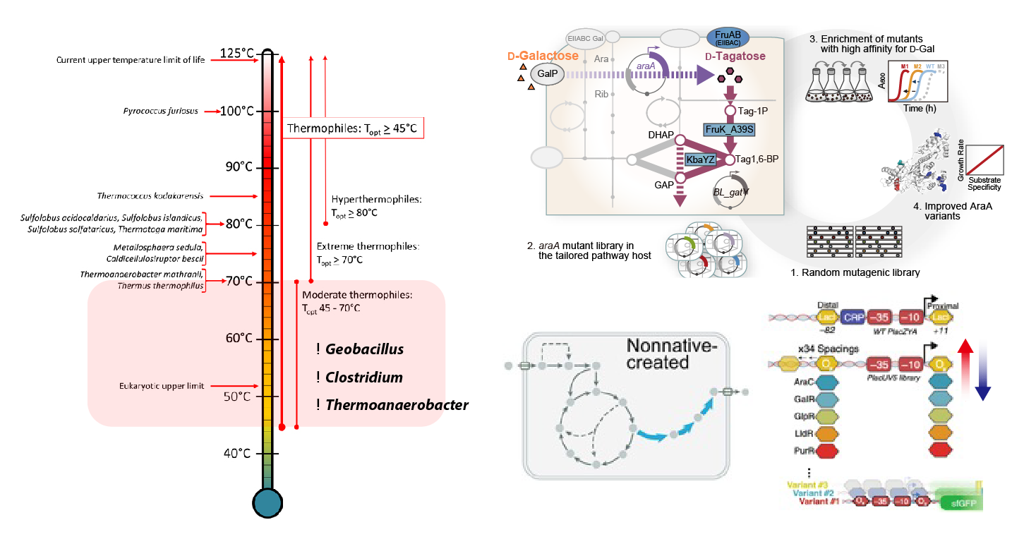 - Development of genetic tool specialized for metabolic engineering of extremophiles- Protein engineering and directed evolution- Prospecting microbial enzymes (sugar isomerases, keratinases, collagenases, etc.)